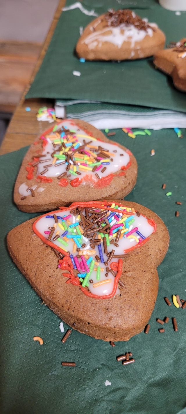 Równolegle odbywały się warsztaty tworzenia pierników oraz ozdób świątecznych, takich jak bombki, które cieszyły się dużym zainteresowaniem zarówno wśród dzieci, jak i dorosłych 🎨🍪